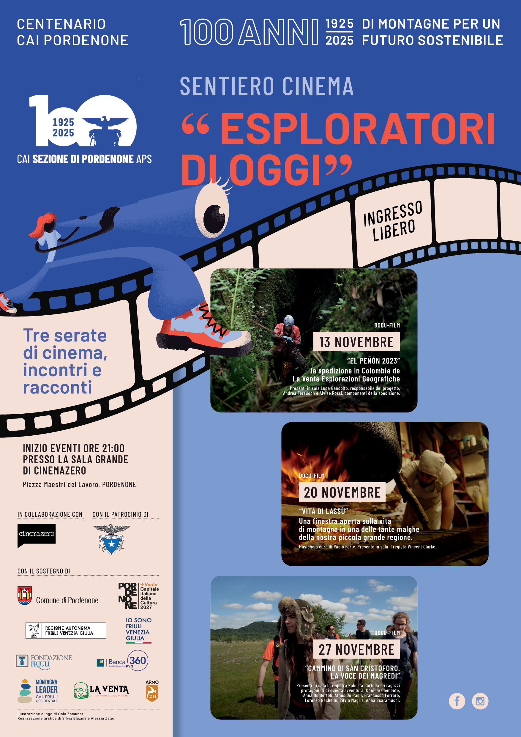 Il CAI Pordenone, in collaborazione con Cinemazero, presenta il nuovo ciclo autunnale di Sentiero Cinema dal titolo “Esploratori di oggi”: tre serate dedicate al racconto dell’avventura contemporanea, quella che nasce dal desiderio di conoscere, dal rispetto per l’ambiente e dall’incontro con territori e persone.