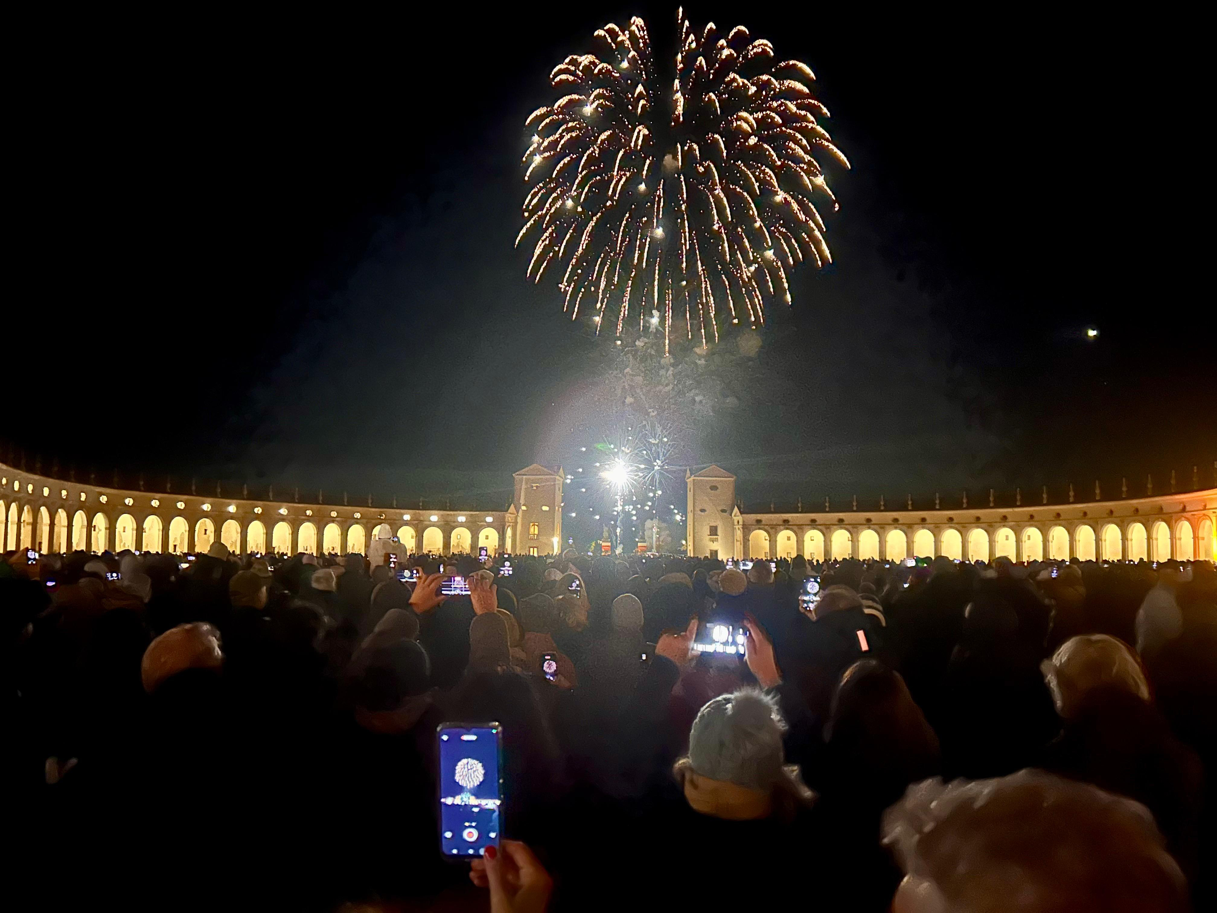 Diecimila persone stimate, ben oltre le aspettative, hanno partecipato questa sera a “La Notte dei Confini – Fuochi, musica e colori”, la festa di Natale a Villa Manin che ha trasformato la dimora storica in un palcoscenico tra videomapping, musica, parole e spettacolo pirotecnico, in dialogo con la mostra “Confini. Da Gauguin a Hopper”