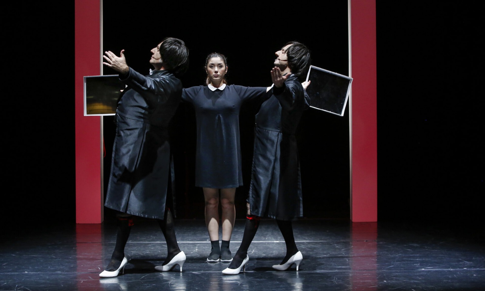Accanto a Rossini prendono vita le Parole, incarnate dal librettista Jacopo Ferretti, e il Canto, rappresentato da Angelina, una giovane ragazza dei giorni nostri che sta facendo le pulizie in teatro. È proprio lei, figura contemporanea e concreta, a diventare il ponte tra passato e presente, aiutando i due artisti ottocenteschi a intrecciare musica, parole e voce in un’opera destinata a diventare celebre: Cenerentola ossia il trionfo della bontà. Tre personaggi che si muovono come fili di una trama poetica e surreale, dando vita a quadri comici ed emozionanti, in sintonia con la musica del maestro pesarese.