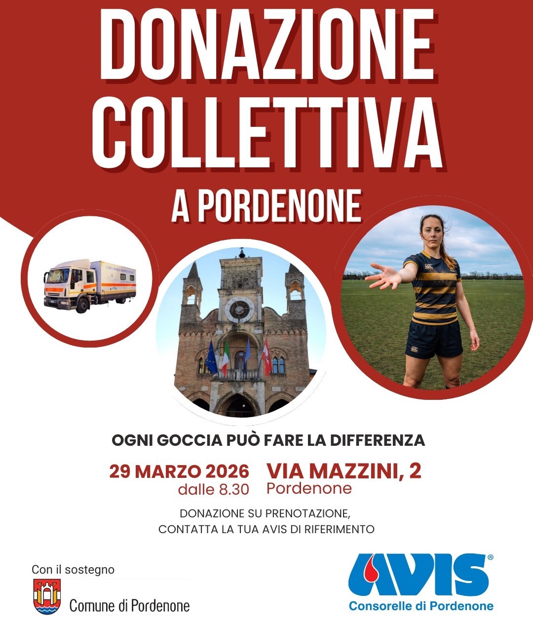 Domenica 29 marzo il cuore di Pordenone si tingerà di solidarietà grazie a un’importante iniziativa promossa dalle AVIS di Pordenone: per la prima volta, infatti, le Comunali di Borgomeduna, Centro, Rorai Grande, Torre, Vallenoncello e Villanova uniranno le forze per una raccolta straordinaria con autoemoteca. L’evento si svolgerà in una posizione centrale e di grande visibilità, in piazzetta Cavour, trasformando uno dei luoghi più frequentati della città in una vera e propria vetrina di sensibilizzazione sul valore della donazione di sangue e plasma.
