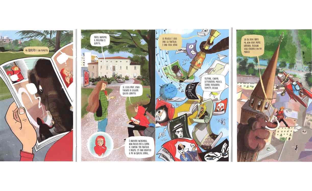 Inaspettatamente, l’incontro diventa l’inizio di un viaggio ricco di scoperte: dagli affreschi della “Urbs Picta” alla figura misteriosa dell’Ofiuco, il segno zodiacale scomparso, passando dal fiume Noncello agli scorci simbolici della città in groppa a un mammut! In questo straordinario viaggio, non manca inoltre una visita al Palazzo del Fumetto.