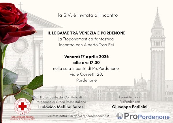L’incontro, dal titolo “Il legame tra Venezia e Pordenone” è realizzato in collaborazione con la ProPordenone e si terrà proprio nella sala incontri di viale Cossetti 20, venerdì 17 aprile alle ore 17.30. L’ingresso è libero.