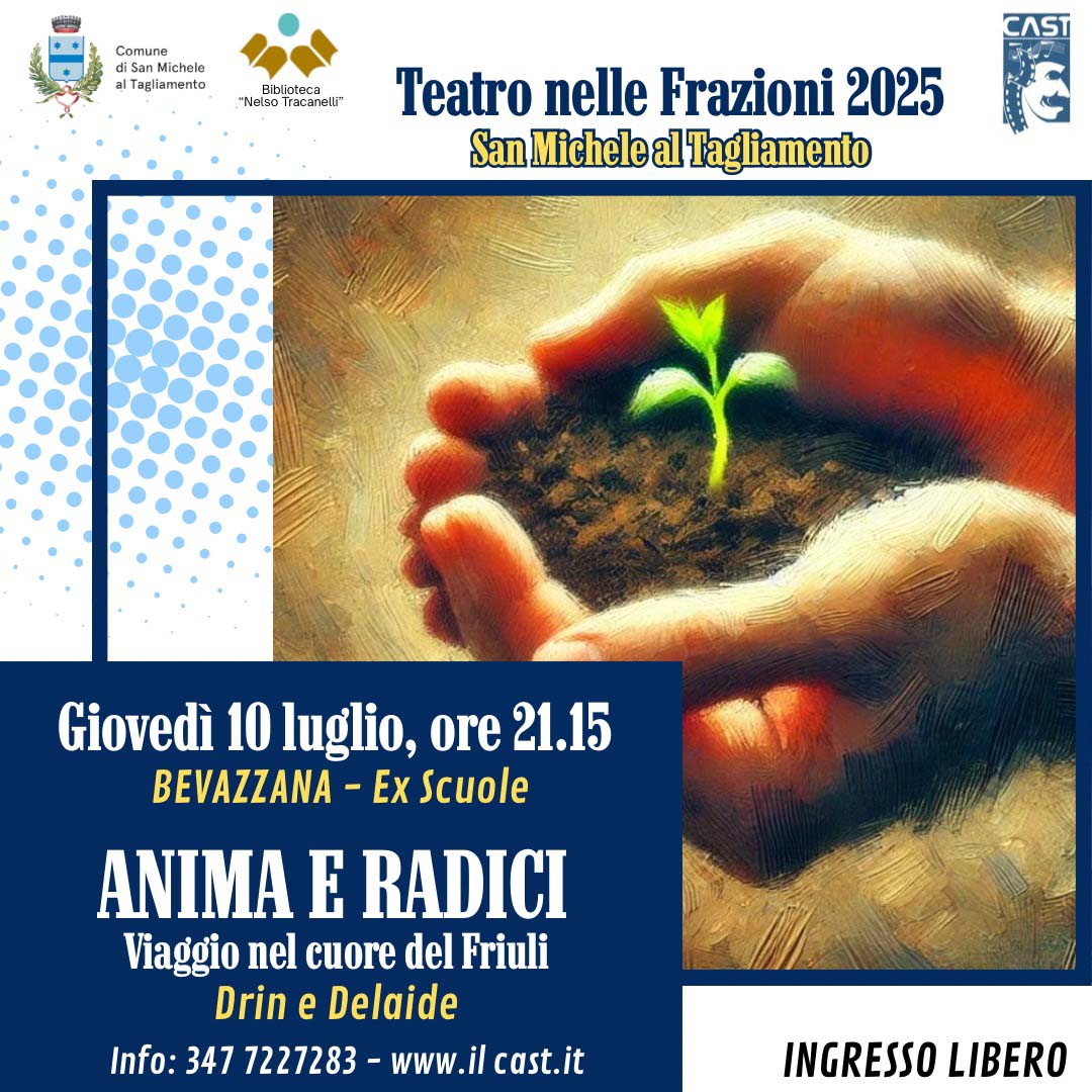Spettacoli 9 Luglio 2025 San Michele al Tagliamento: teatro nelle frazioni. Giovedì 10 luglio a Bevazzana “Anima e radici”